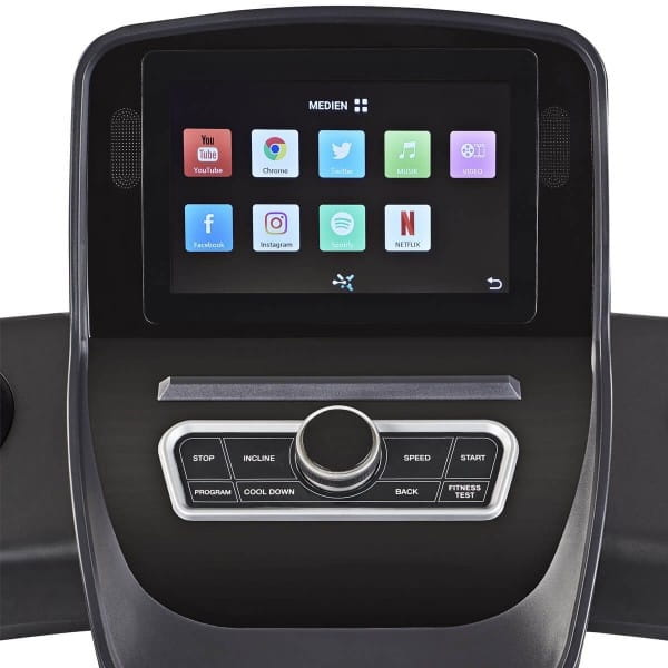 Dzięki wszechstronnemu pakietowi multimediów i centralnej konsoli Android Touch jesteś w każdej chwili połączony ze światem fitness. Bardzo duży pas bieżni zapewnia niezbędne bezpieczeństwo, a jednym dotknięciem dopasowujesz żądaną intensywność treningu. Bieżnia o wysokiej wydajności - zaprojektowana, abyś mógł ją jak najlepiej wykorzystać!