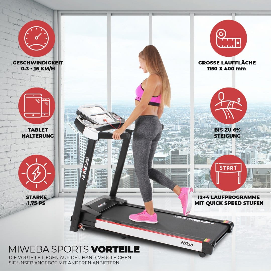 Inne funkcje: 4 poziomy szybkiej prędkości (3,6,9,12 km / h), 12 uruchomionych programów, złącze USB do ładowania smartfona, monitor pulsu, złącze AUX