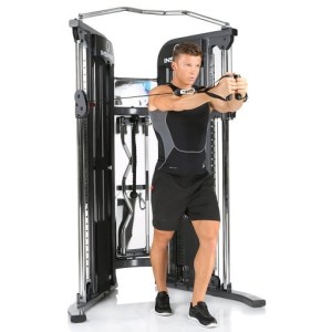 Kompaktowa i profesjonalna brama przekonuje dwiema niezależnymi wieżami. Jest idealna do „treningu funkcjonalnego”, trendu fitness z maksymalną swobodą ruchów. Dzięki dwóm stosom o wadze 75 kg każdy, profesjonalnemu doborowi akcesoriów i typowej dla studia stacji do podciągania masz zagwarantowaną różnorodność ćwiczeń w domowym zaciszu.
