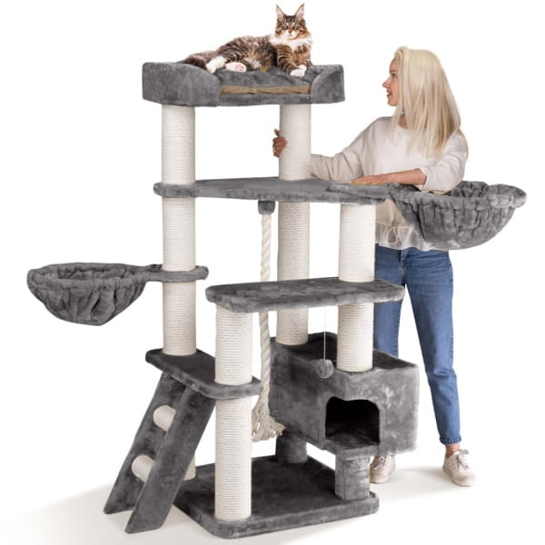 ZABAWA, RELAKS I UKRYWANIE: Dzięki solidnej konstrukcji i wnękom do leżenia w rozmiarze XL 2, 3, a nawet 4 koty mogą jednocześnie bawić się, odpoczywać i odpoczywać na tym drapaku.