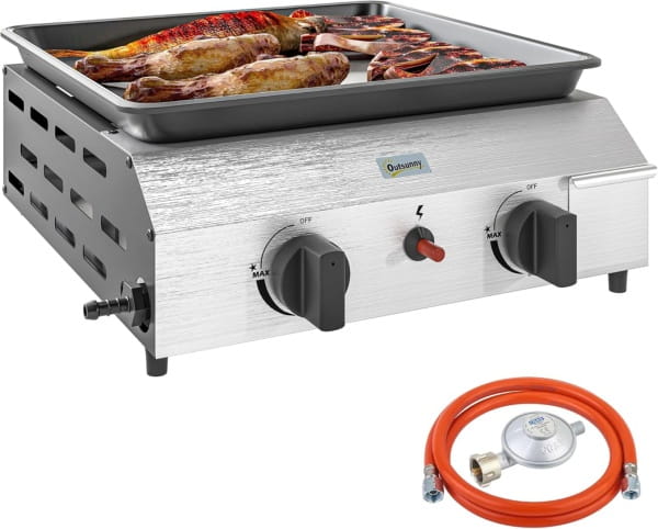 Płyta gazowa: emaliowana metalowa płyta grilla gazowego idealnie nadaje się do smażenia szerokiej gamy potraw, takich jak naleśniki, kiełbaski, łosoś, steki i warzywa.