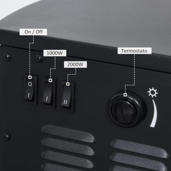 ✓ Z efektem płomienia LED, regulowanym niezależnie od funkcji ogrzewania