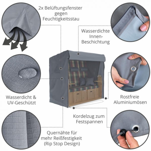 Pokrowiec na krzesło plażowe SANZARO zapewnia wystarczającą ochronę Twojego leżaka. Pokrowiec z zamkiem błyskawicznym jest łatwy w zakładaniu i tworzy odporną na warunki atmosferyczne osłonę dla Twojego leżaka.