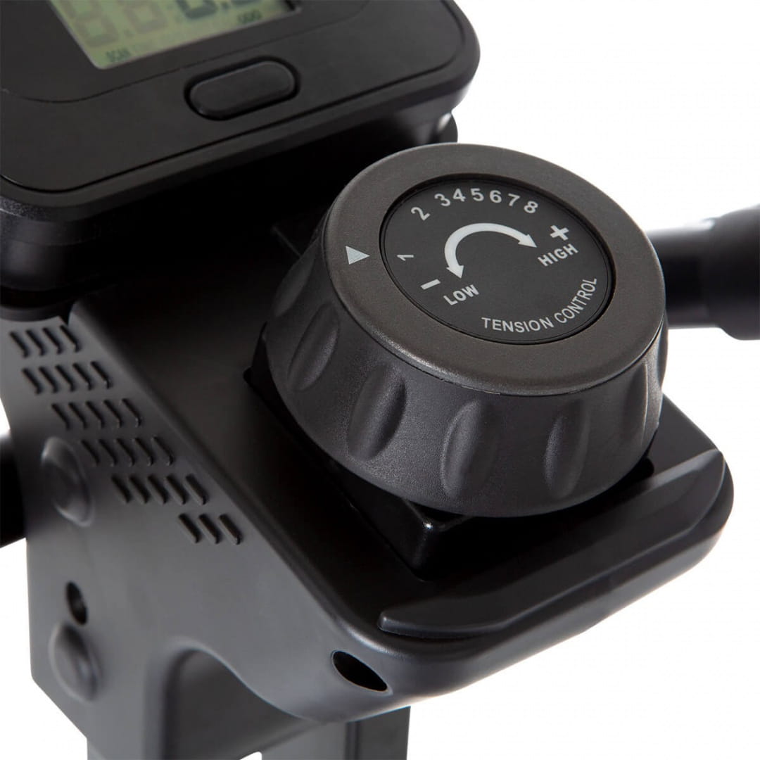 Opór można łatwo i szybko regulować za pomocą poręcznego pokrętła. Masz pełną kontrolę nad obciążeniem i możesz obsługiwać opór jedną ręką podczas treningu wytrzymałościowego i ustawiać go ręcznie na 8 poziomach. Od umiarkowanego treningu do jednostek o wysokiej intensywności - wybór należy do Ciebie.