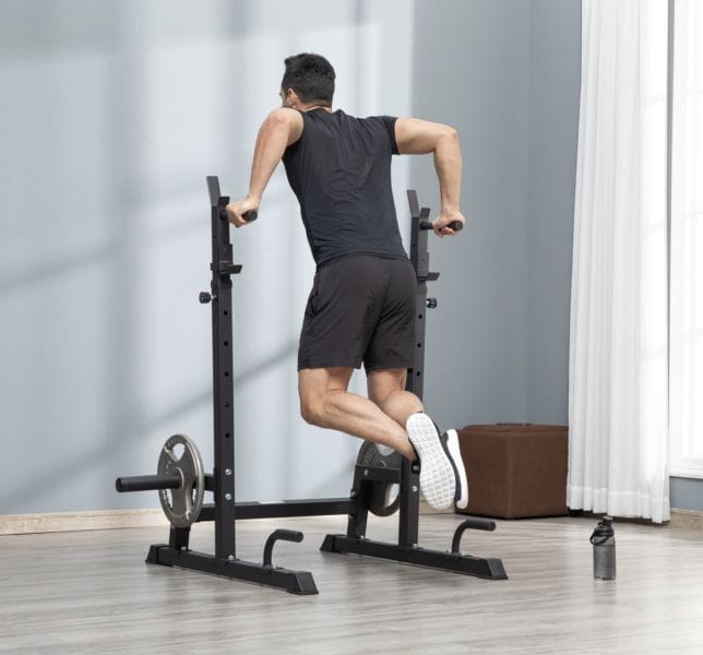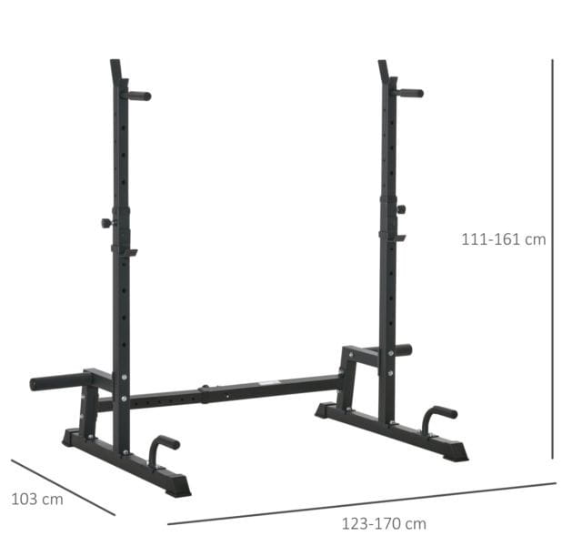 Ciesz się treningiem w swojej osobistej siłowni w domu dzięki temu wysokiej jakości, wielofunkcyjnemu stojakowi na sztangę firmy HOMCOM. Półka wykonana jest z wytrzymałej stali i można ją regulować w 10 pozycjach. Taca wykonana jest z wytrzymałej stali i posiada 10 pozycji, dzięki czemu można ją dopasować do wzrostu każdej osoby. Antypoślizgowe gumowe zaślepki zapewniają dodatkową przyczepność i chronią podłogę przed zadrapaniami i zadrapaniami.