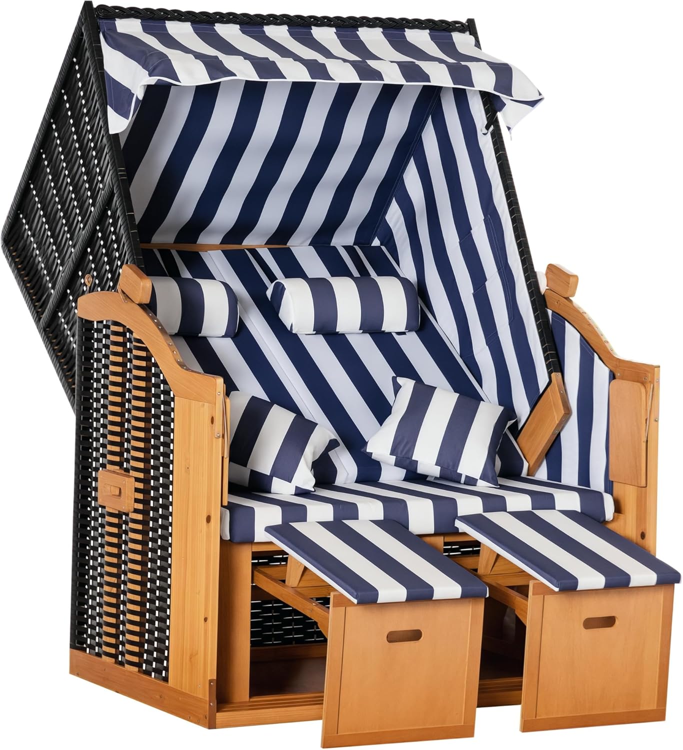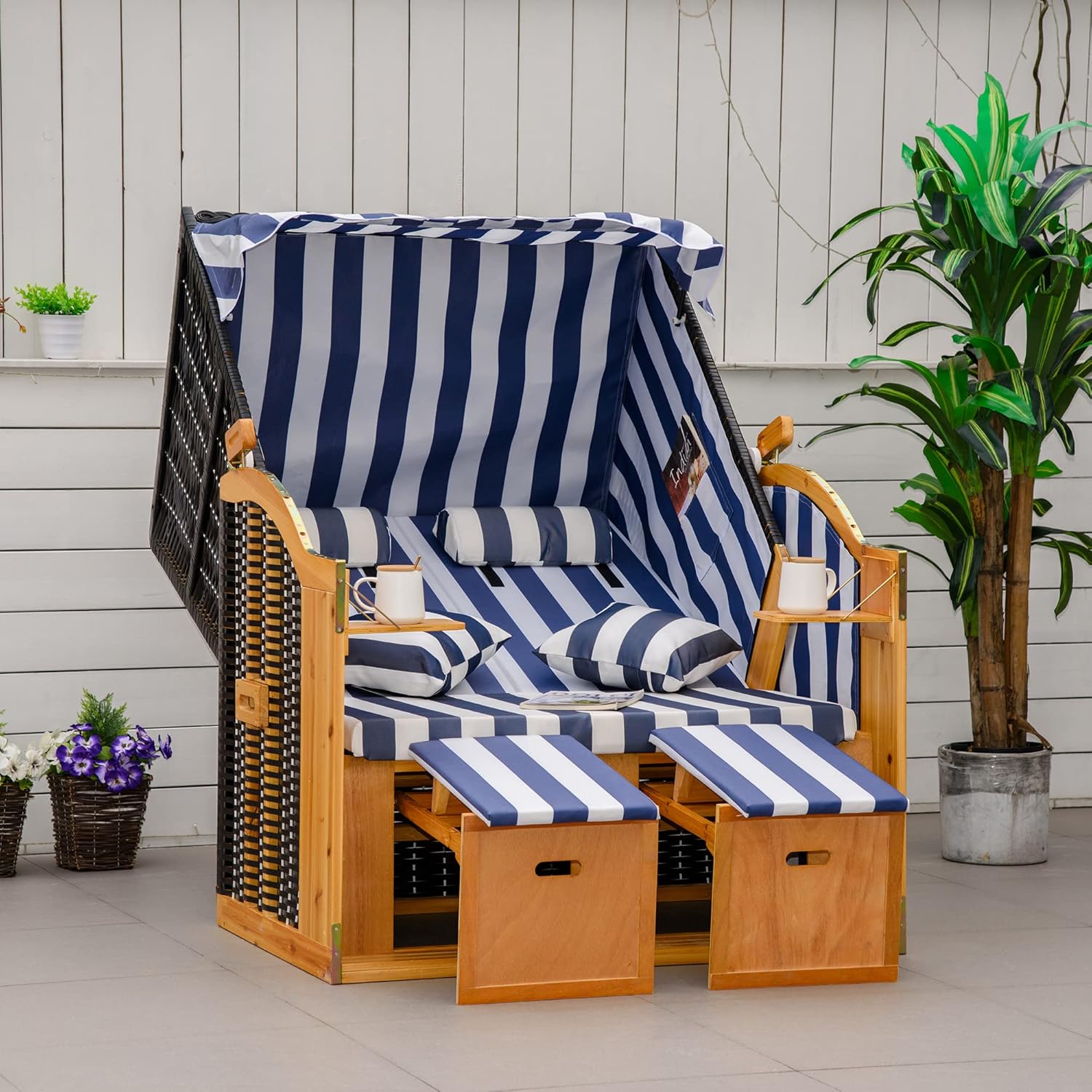 Elegancki i jednocześnie przytulny: Kosz plażowy firmy Outsunny dla dwóch osób przyciąga wzrok. Dobrze sprawdza się zarówno na tarasie, jak i w ogrodzie i oferuje wszystko, co znasz z koszy plażowych na urlopie: dwa praktyczne składane stoły, wysuwane podnóżki, dach przeciwsłoneczny do podniesienia i wielostopniowo regulowane oparcie. Dzięki temu w łatwy sposób uzyskasz w domu prawdziwe uczucie na plaży i urlopie.
