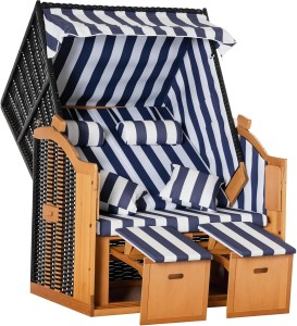 - PRAKTYCZNE ROZWIĄZANIE: Kosz plażowy dla dwóch osób wyposażony jest w dwa składane stoliki oraz posiada wewnątrz kieszonki, w których można przechowywać np. czasopisma czy książki. W razie potrzeby można schronić się pod daszkiem przeciwsłonecznym.
