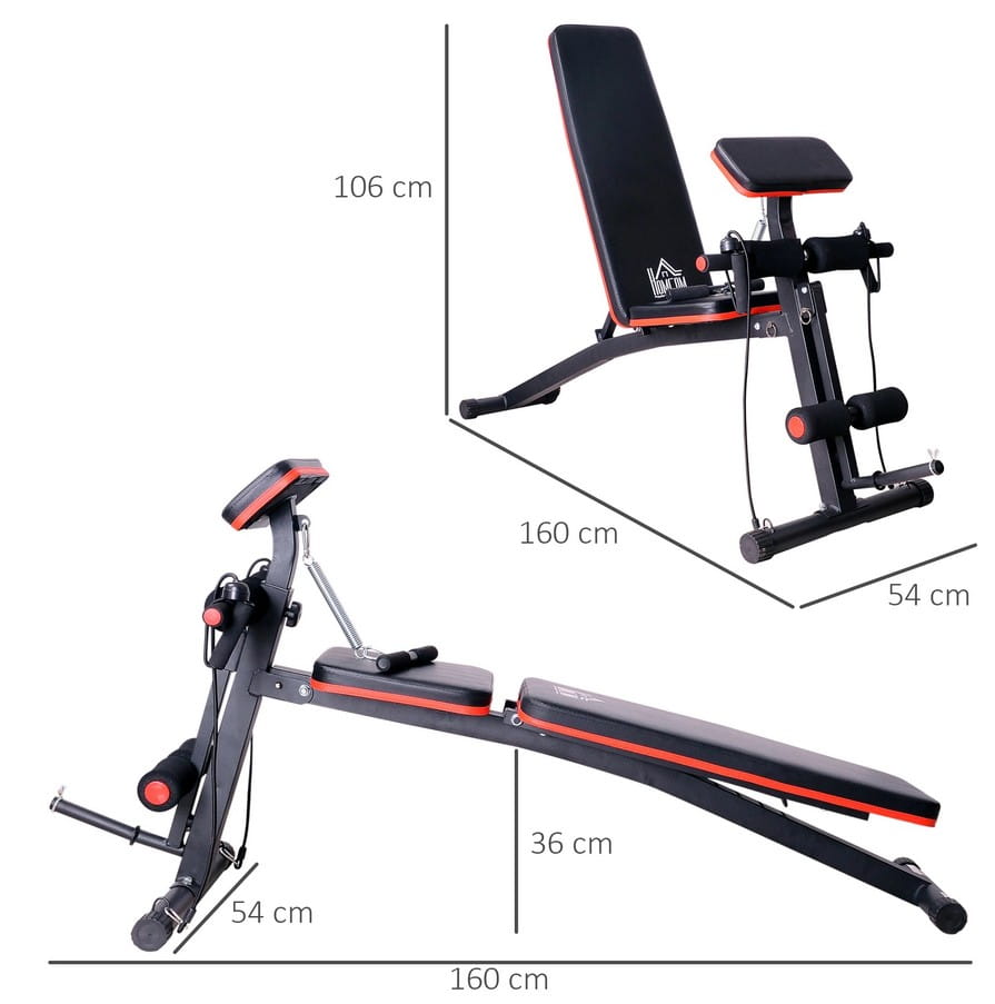Dzięki ławce treningowej firmy HOMCOM możesz przenieść swój domowy trening na wyższy poziom. Możesz go urozmaicić o ćwiczenia na biceps, ćwiczenia na triceps, wiosłowanie, wyprosty nóg, pompki czy brzuszki. Oparcie z 7-stopniową regulacją umożliwia bezproblemowe wyciskanie, trening ramion i inne ćwiczenia. Stabilna stalowa rama zapewnia optymalną stabilność podczas treningu. Napięte, ale wygodne obicia zapewniają wygodę. Po udanym treningu możesz łatwo złożyć swoją wielofunkcyjną ławkę i ją wygodnie przechować, gdyż zajmuje mało miejsca. Zadbaj o kondycję całego ciała, korzystając z jednego urządzenia!