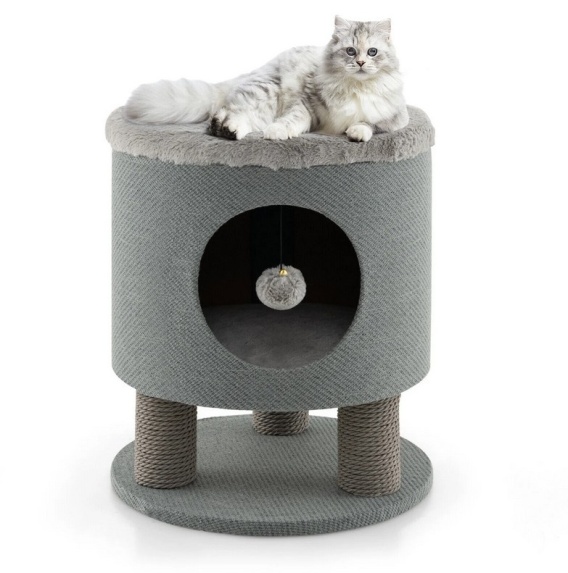 - 【Uwolnij instynkt Twojego kota】 Taboret ze zintegrowaną legowiskiem dla kota jest wyposażony w słupki o wielkości 7,5 cm z odpornej zarysowania liny z papieru typu kraft. Te słupki zapewniają Twojemu kotu idealną możliwość ostrzenia pazurów bez uszkadzania mebli. Puszysta piłka wisząca sprawia, że nie będzie się nudzić.