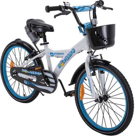 Akcesoria: przedni kosz, dzwonek, butelka do picia z uchwytem, ​​stojak na rowery